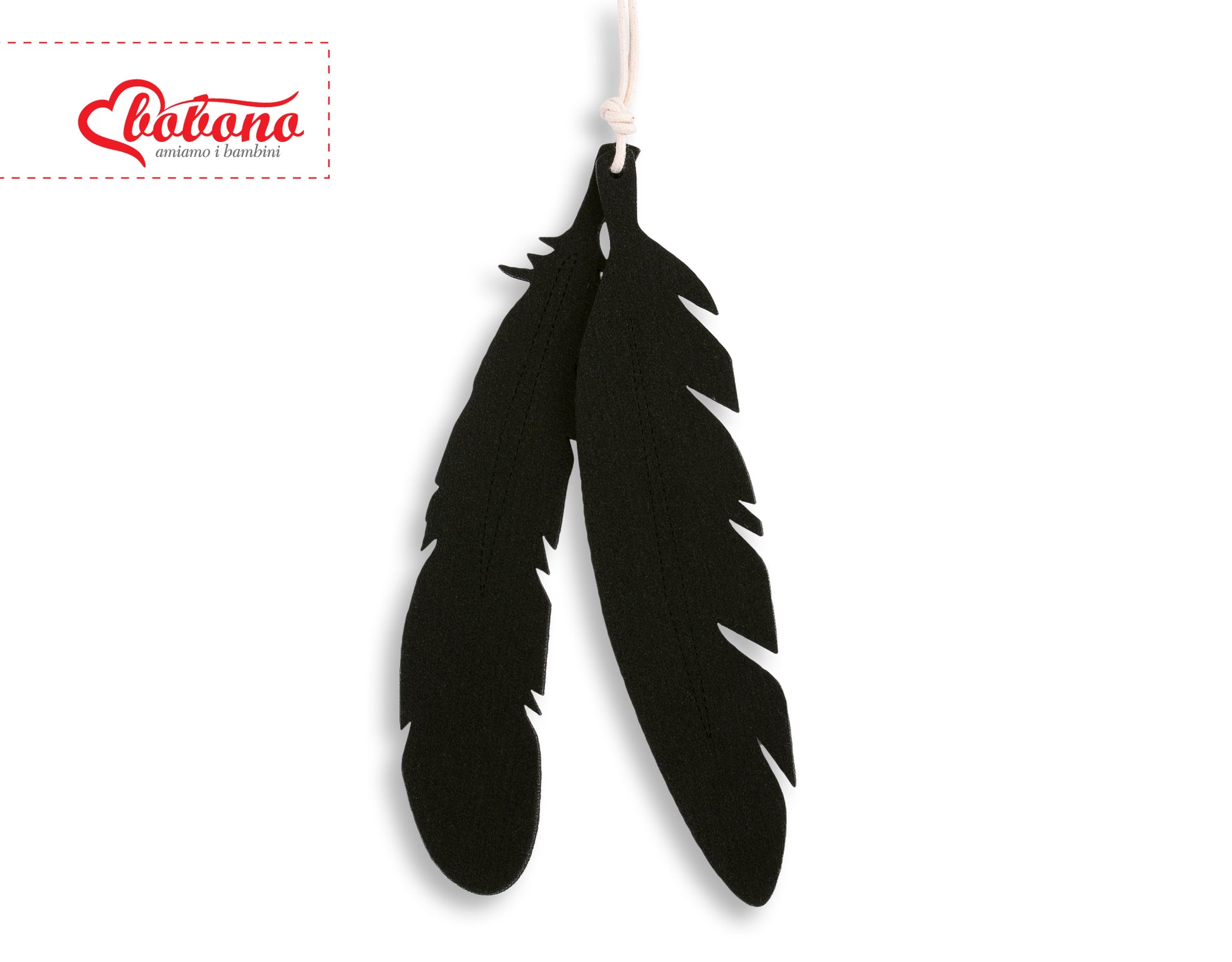 Set of 2 decorative felt feathers in black, ideal for nursery decoration or craft projects with a modern look.