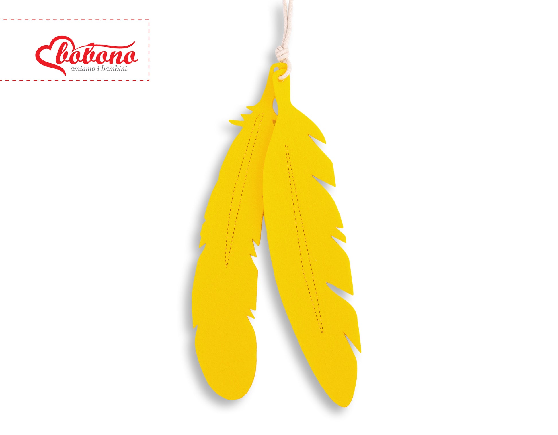 Set of 2 cheerful yellow felt feathers, ideal for brightening up nursery spaces or tipi tent decorations.