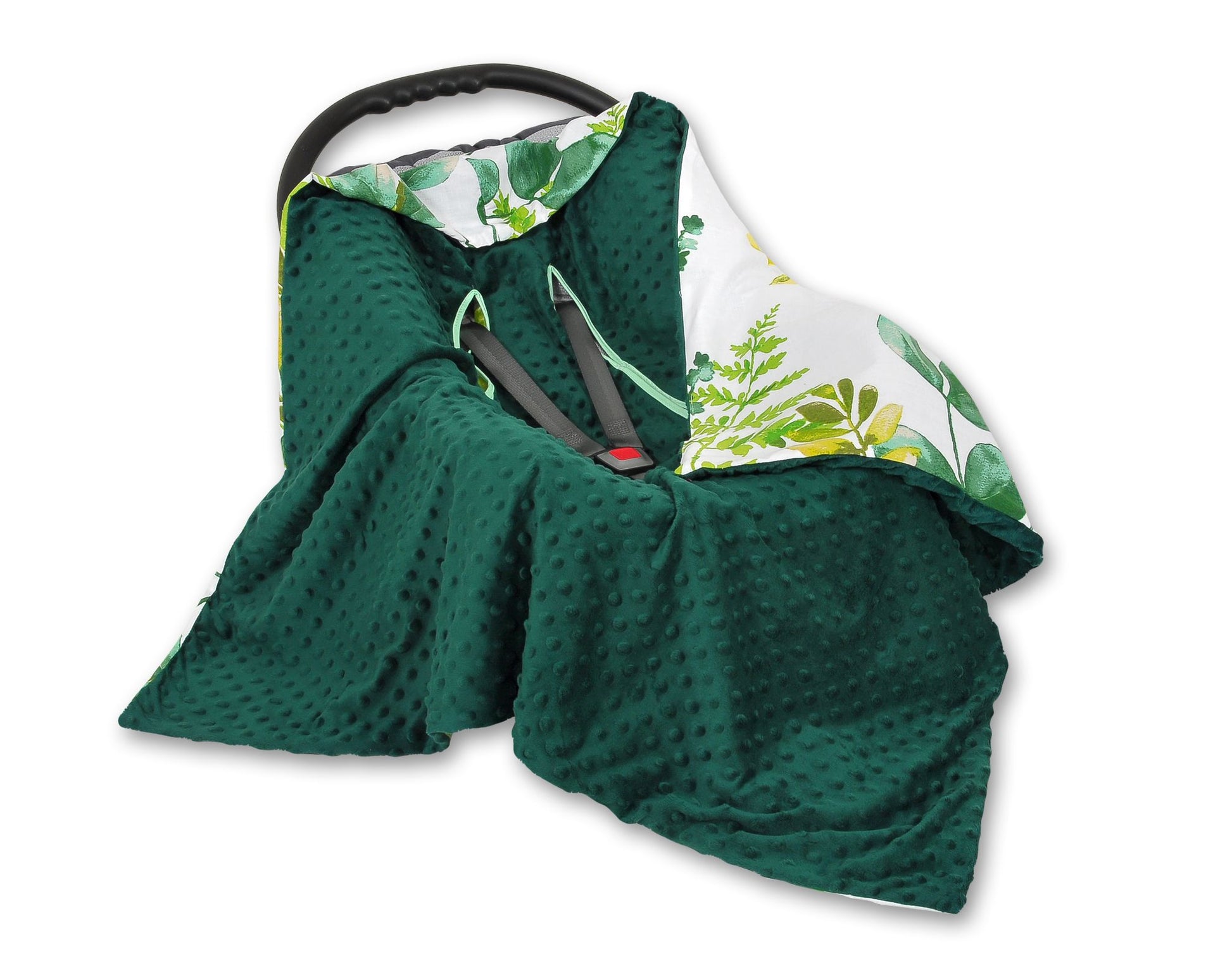 Soft and versatile large double-sided baby wrap in eucalyptus green, perfect for car seats, carriers, and strollers to keep your baby snug and protected.